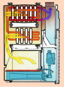 Eingesetzt werden Heizeinsätze mit Gasbrenner ohne Gebläse als Vollautomat in